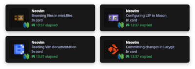 [!NOTE] cord.nvim will automatically load with defaults; calling
