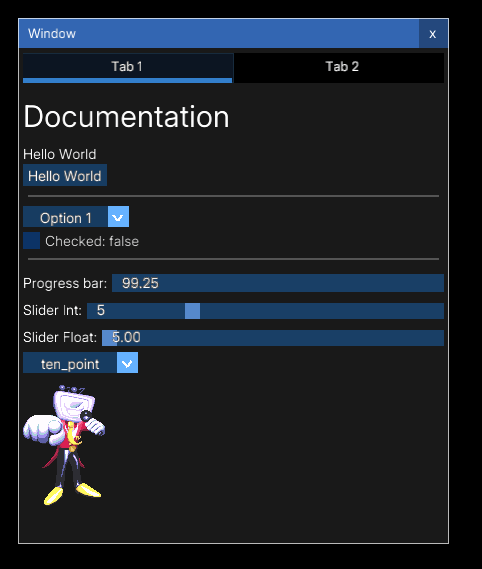 win.button(id, "Label"); // Use the `.clicked` property to check if its clicked