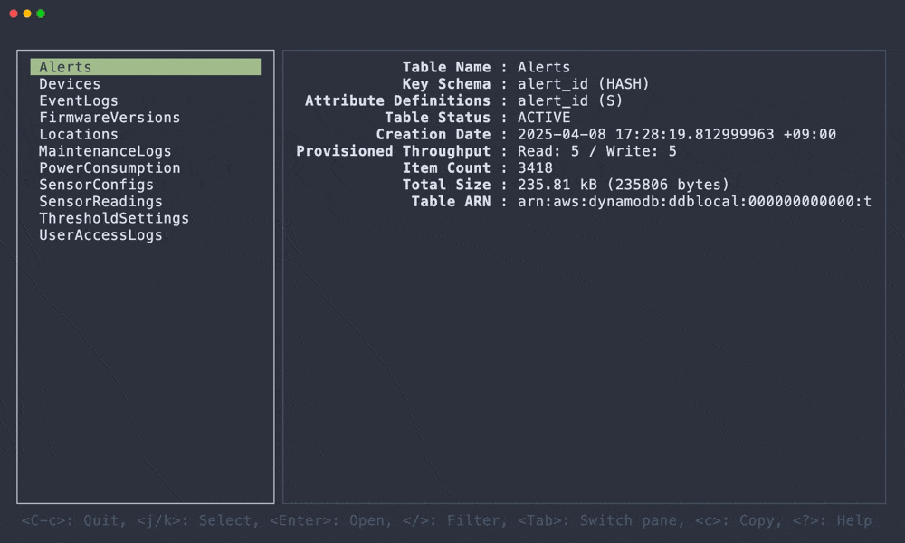 DDV is a TUI application to view Amazon DynamoDB in the terminal.