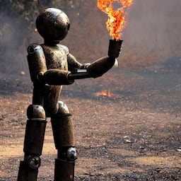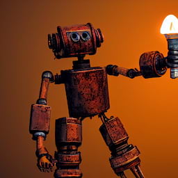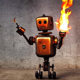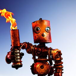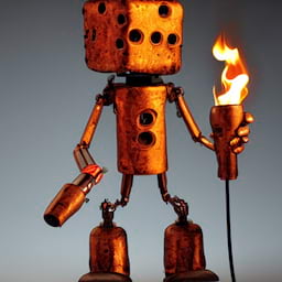 This generates some images of rusty robots holding some torches!