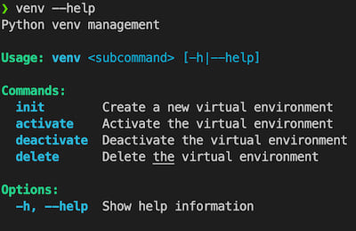 No more hassle writing shell functions! Easy subcommands and help documentation