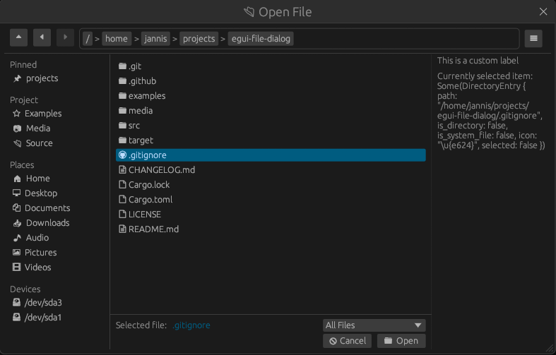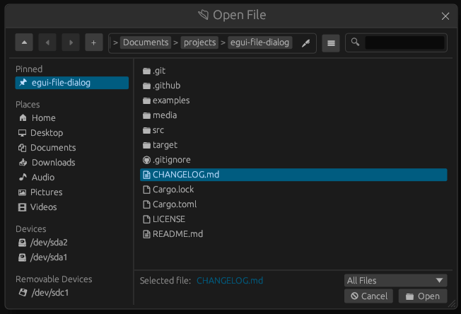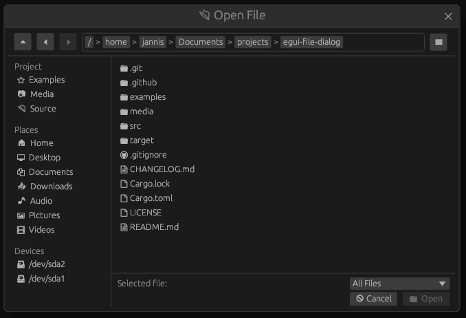 This repository provides an easy-to-use and customizable file dialog (a.k.a. file explorer, file picker) for egui.