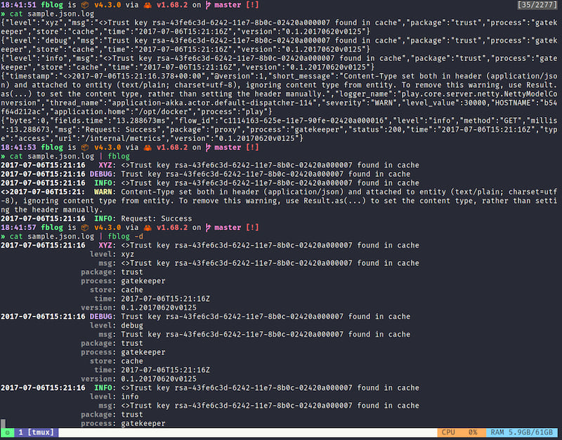 fblog tries to detect the message, severity and timestamp of a log