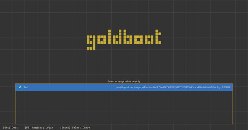 Once the USB is created, you can use it to boot into the goldboot live environment and select an image to deploy: