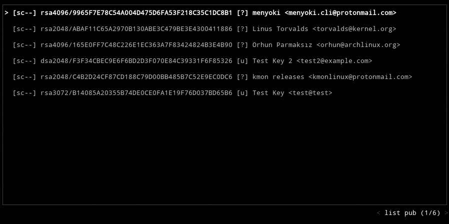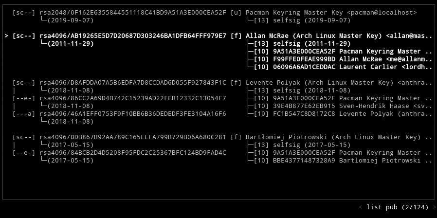 gpg-tui --style colored --splash --homedir /etc/pacman.d/gnupg