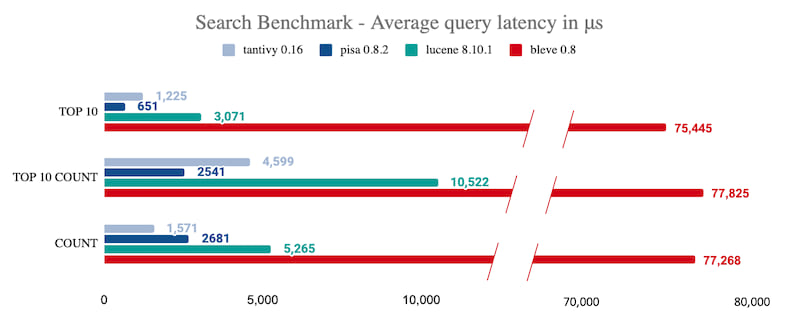 - According to our search latency benchmark, Tantivy is approximately 2x faster than Lucene.