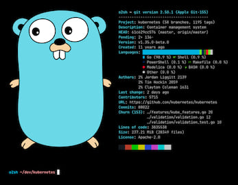 It automatically detects open-source licenses from their text and provides valuable information such as language distribution, pending changes, dependency counts (per package manager), top contributors (by number of commits), disk usage, creation date, lines of code (LOC), and more.
