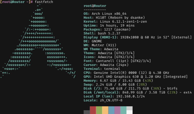 This screenshot shows the result of running fastfetch in the example terminal. You can try it by running cargo run --release --example terminal --features=truetype (Linux only).