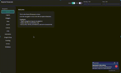 - Widgets — Text, Button, TextField, Checkbox, Switch, Slider, ScrollArea, LazyColumn