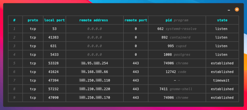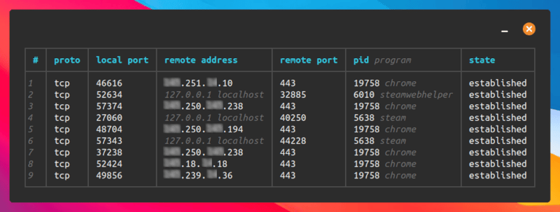 A human-friendly alternative to netstat for socket and port monitoring on Linux and macOS.